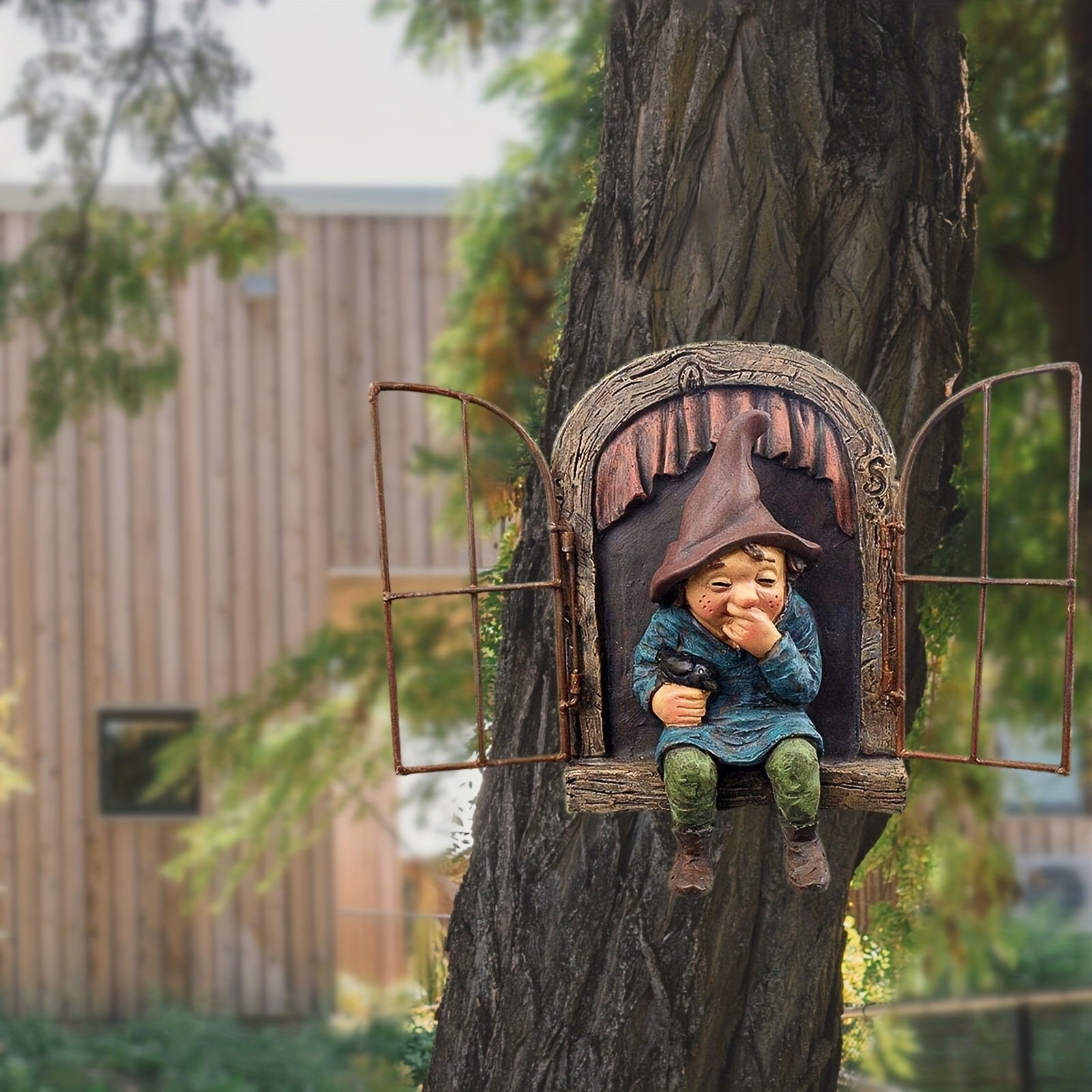 1pc Gnomes Elf Out The Door Statue, Whimsical Tree Tree Hugger, Decoration For Peeker Yard Art Outdoor