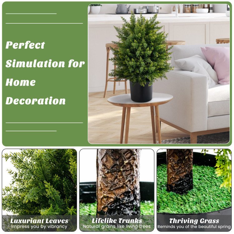 -2-pack artificial cedar topiary ball tree set for living room; balcony; home office & bedroom