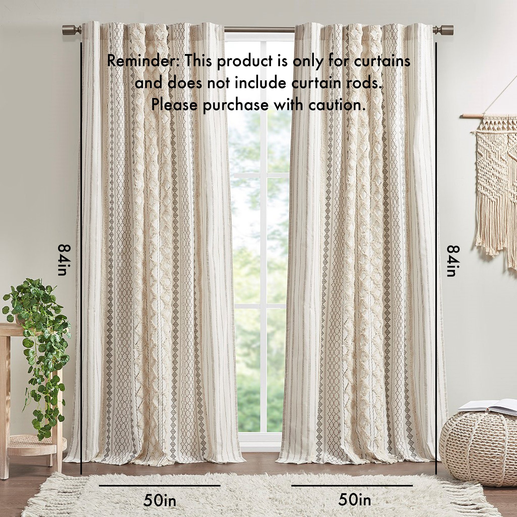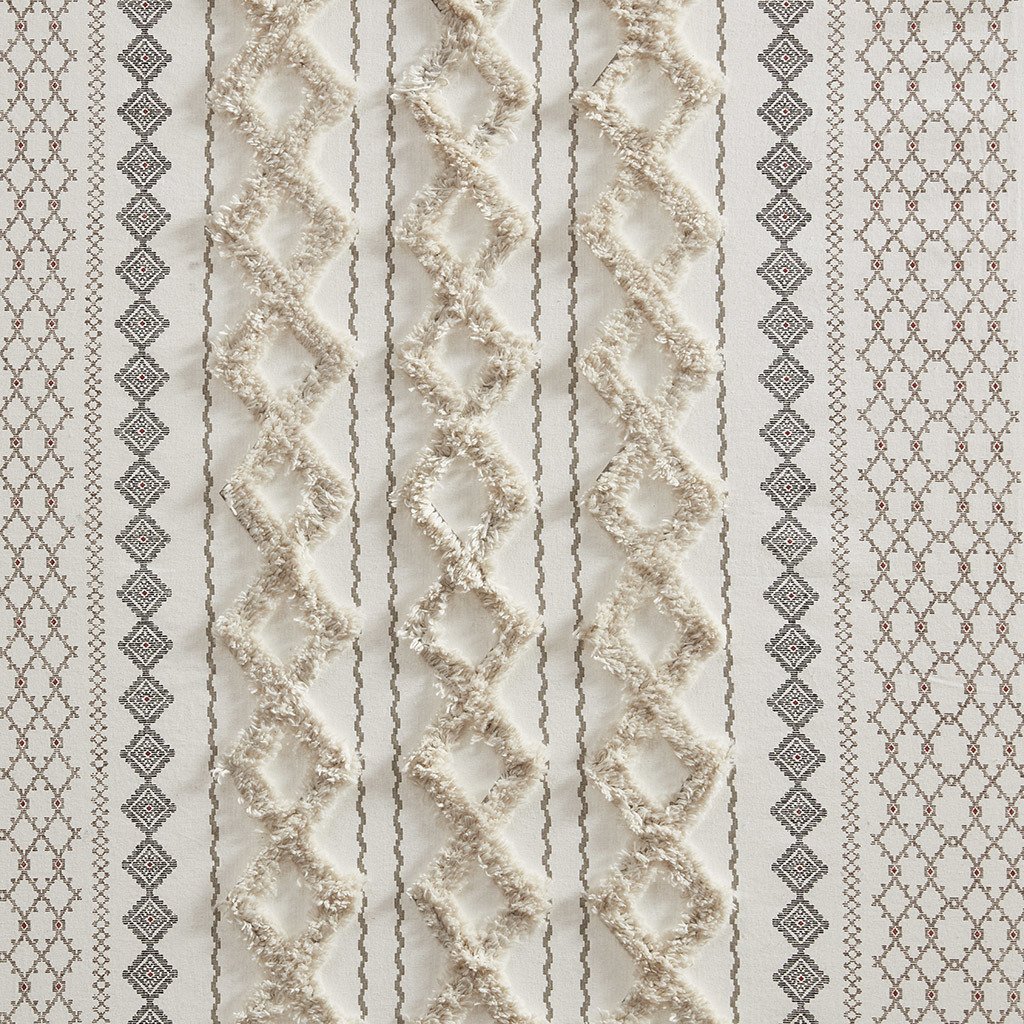 The INK+IVY Imani Cotton Printed Window Panel with Chenille Stripe and Lining offers a chic and casual update to your home. This ivory window panel features a geometric print with a tufted chenille stripe trim, for a textured artisanal look and feel. A lightweight white cotton lining on the reverse softly filters light, while providing better drapability and added privacy. In addtition, this 100% cotton curtain panel is also OEKO-TEX certified, meaning it does not contain any harmful substances or chemicals for the best in quality comfort and wellness. Each panel is finished with a rod pocket top for easy hanging, and back tabs for a more clean and tailored finish. This window panel is sold as a single and 2 window panels must be purchased to cover any standard size window. Complete the look with coordinating bedding sets and bath decor, available and sold separately.