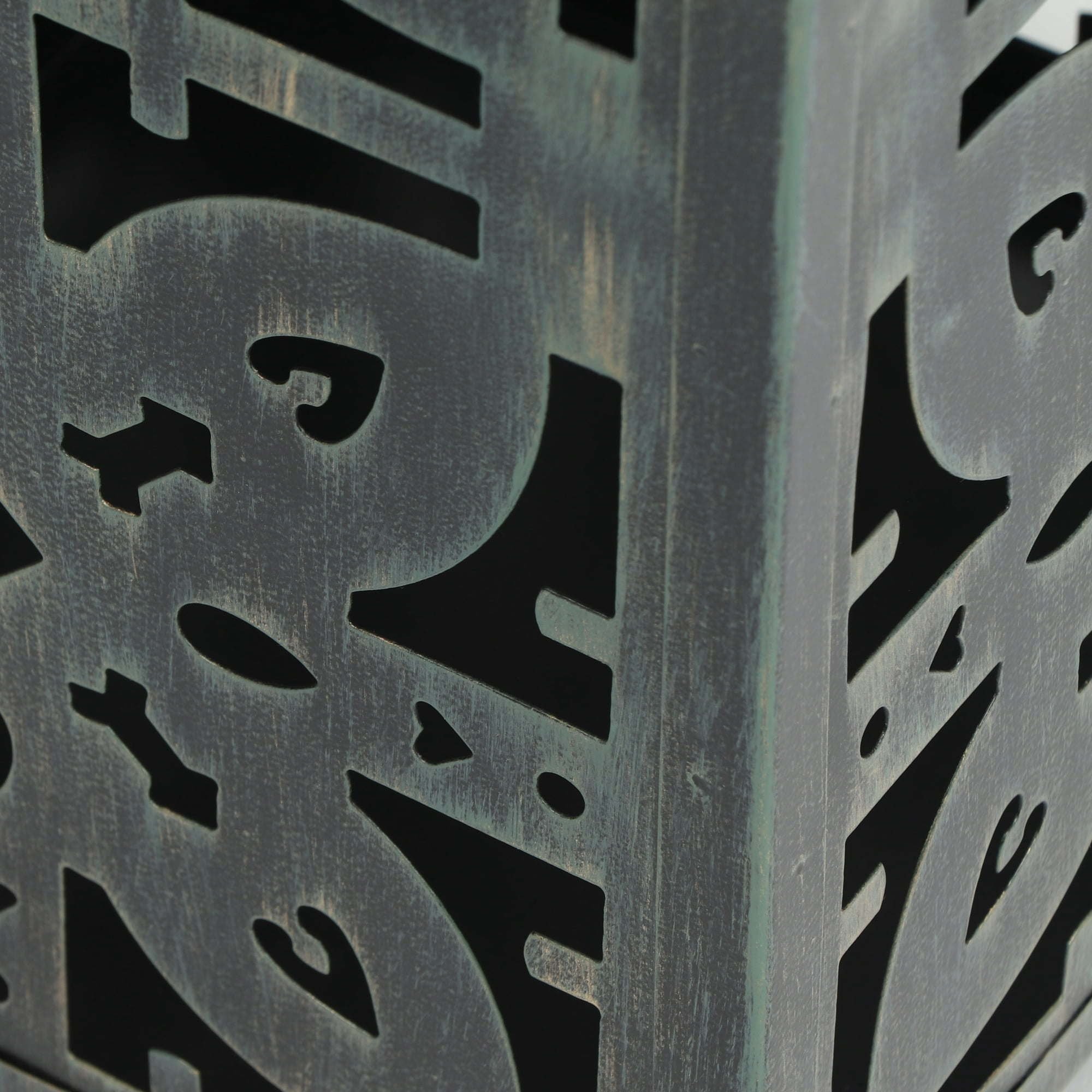 Grace any interior space with a beautiful accessory that brings your decor an old-world charm. Crafted from iron with an ornate design, our decorative lantern offers a beautifully refined accent that brings an elegant time-worn feel to your decor. This is topped with a small hanging ring handle and is finished with a stunning black patina color. Fill this piece with decorative filler or flameless candles to create a centerpiece or accent piece of your own creation, bringing a vacation-home vibe to your decor.