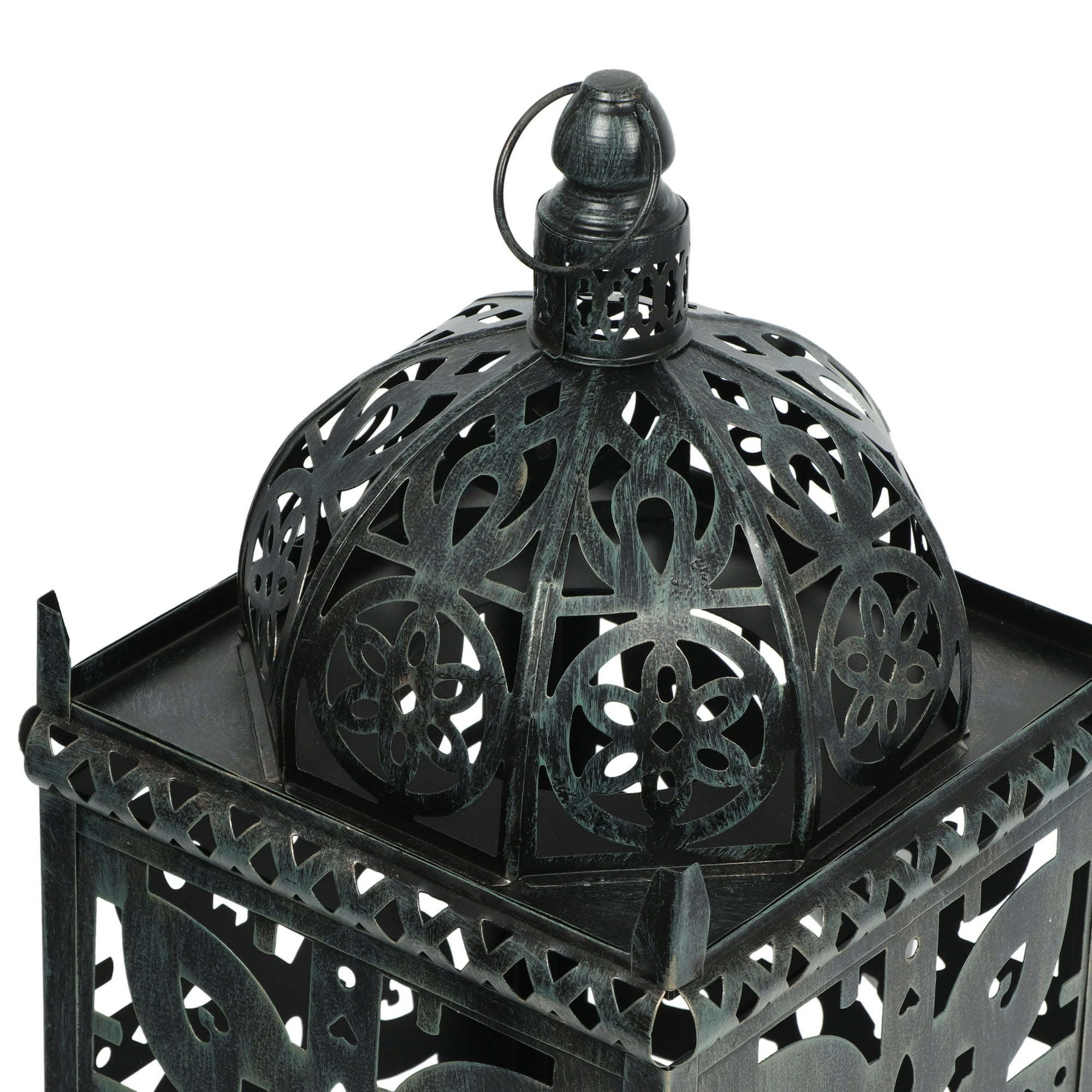 SHABBY CHIC DESIGN: Our lantern features a weathered style that is purposely made to look pleasantly vintage and subtly worn. Offering an ornate design topped with a half-dome structure, this lantern showcases a sleek frame that is completed with a beautiful ring handle.