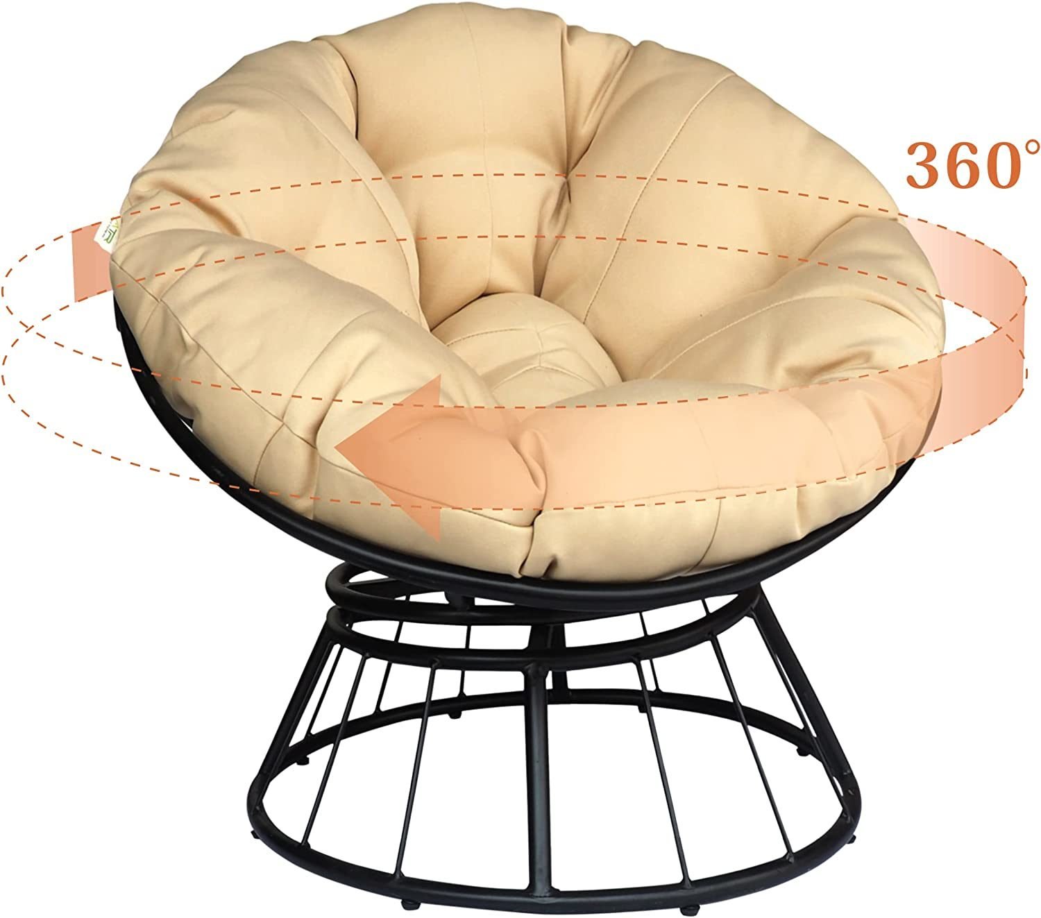 360 DEGREE SWIVEL: The bowl-shaped papasan chair has a fluently swivel structure. When sitting on it, no clacking noise when you spin the chairs. you can easily adjust the position for comfort,view all your surrounding scenery from different angles